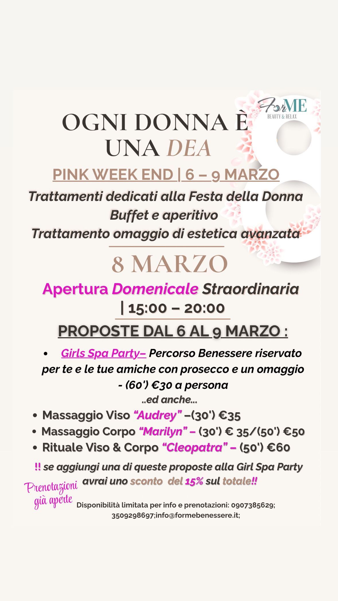 Ecco le favolose proposte pensate per il *PINK WEEK END dal 6 al 9 marzo ( domenica 8 inclusa):*