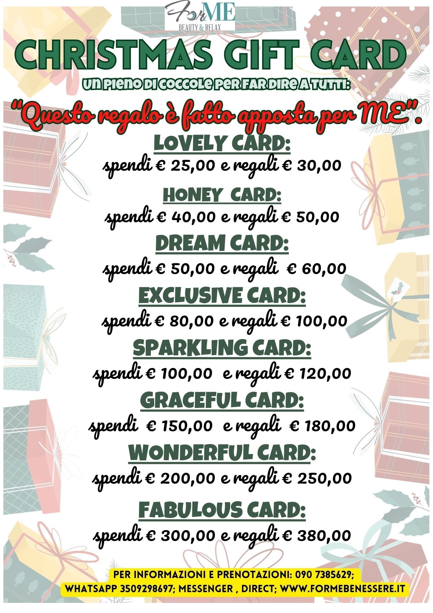 Il regalo più bello di Natale… le Card For ME… lascia a bocca aperta chi ami… la cosa più bella? Noi aggiungiamo un credito ai tuoi importi!