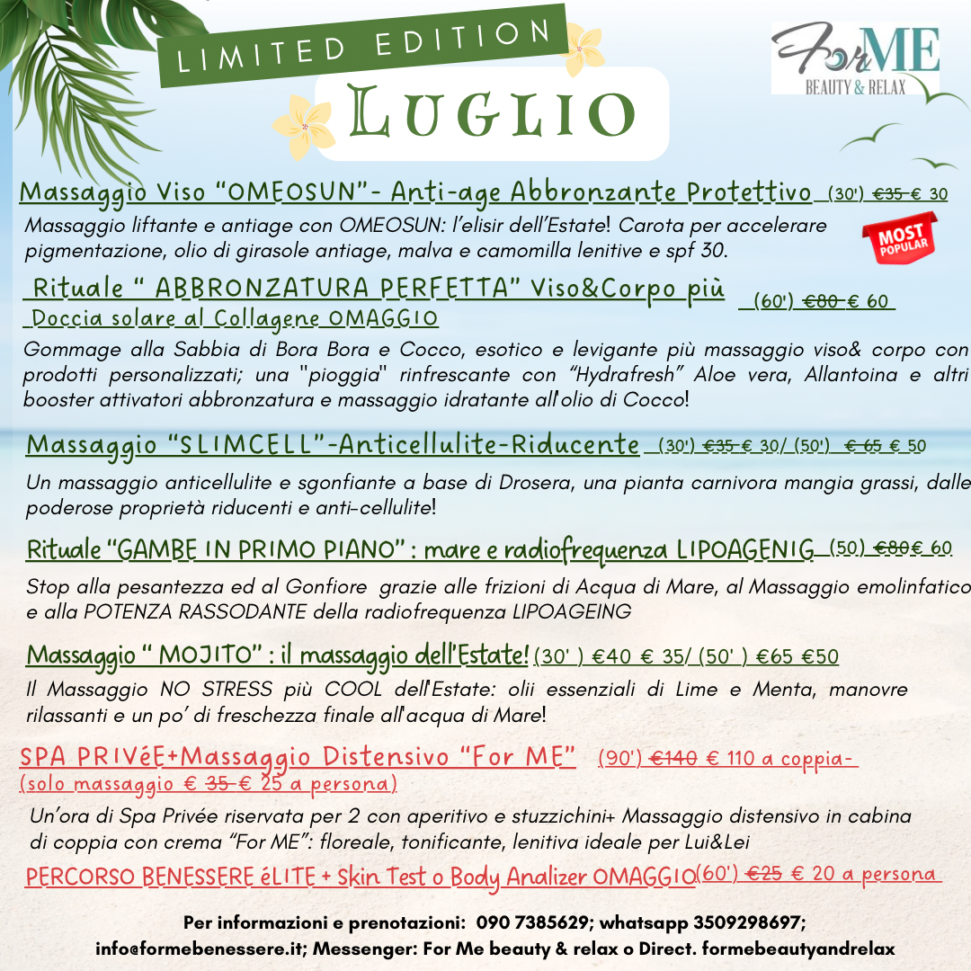 For ME ha selezionato per voi 🤗 i trattamenti e massaggi 💆 più giusti per arrivare alla bella stagione ed alla prova costume 👙 🩳 belli, in forma e rilassati!